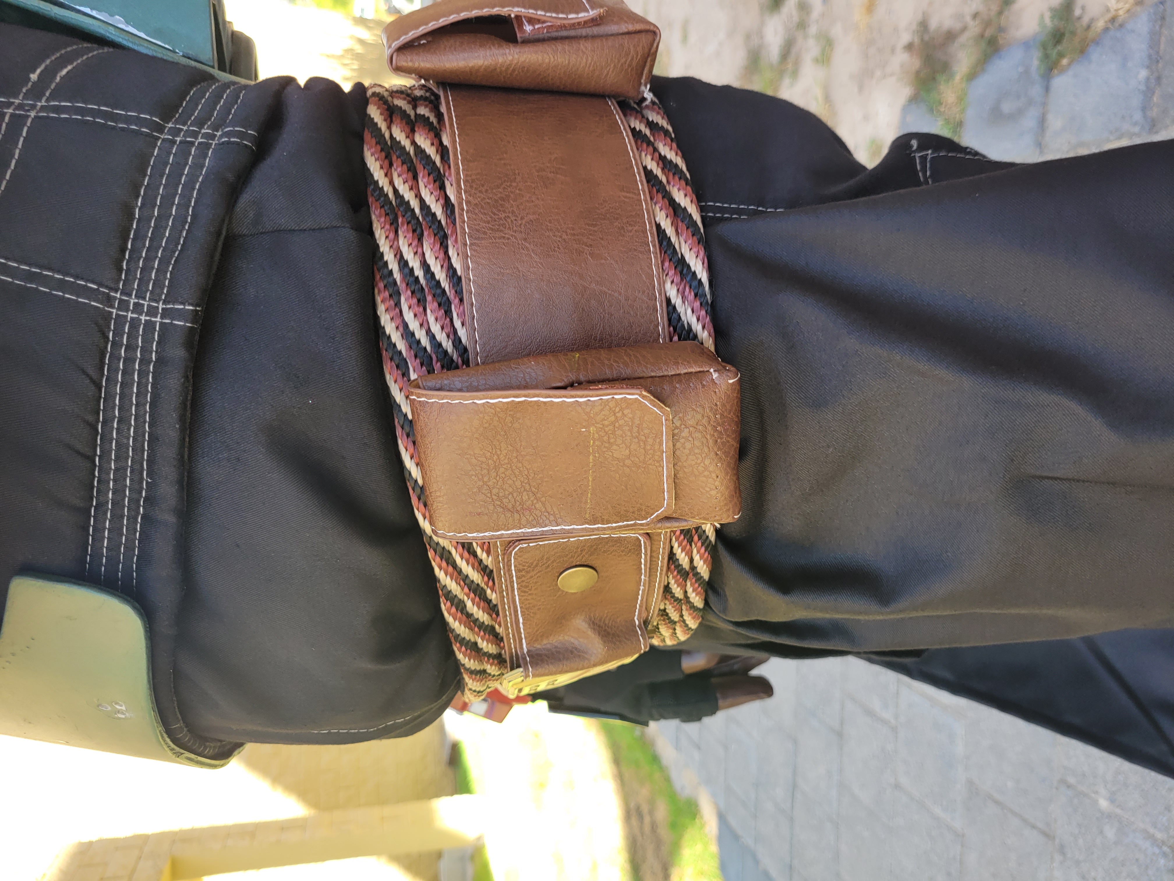 Cinturón Piel - Te adjunto fotos del cinturón de piel ya que tienes cartucheras de más y también tendrás que modificar el corte del panel frontal en algunas. También no logro ver si tienes el remache que va al costado izquierdo de la hebilla o no, pero es necesario para la aprobación.