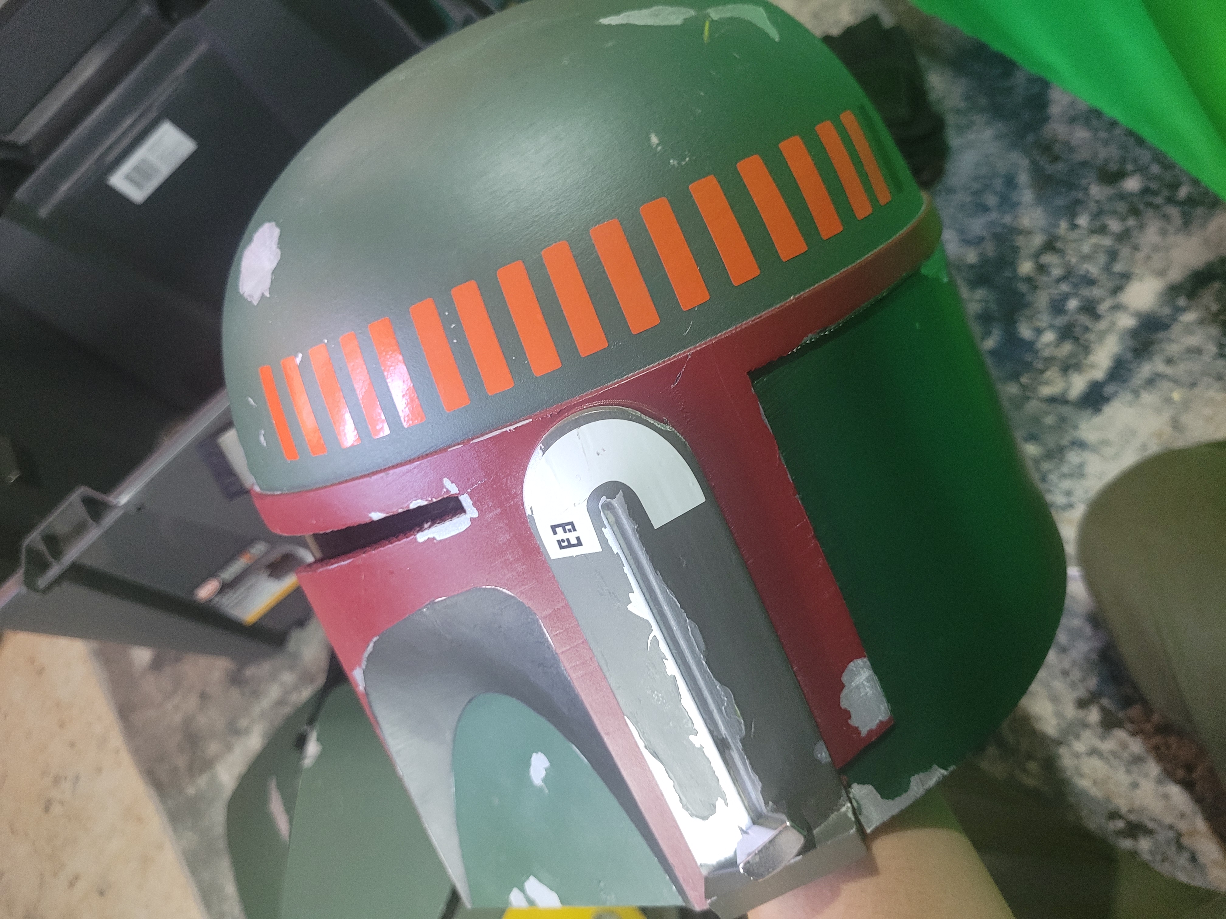 Casco - Repintar la oreja derecha para que asemeje más el CRL, incluyendo detalle negro al centro y cubriendo lo plateado. Adjunto foto.