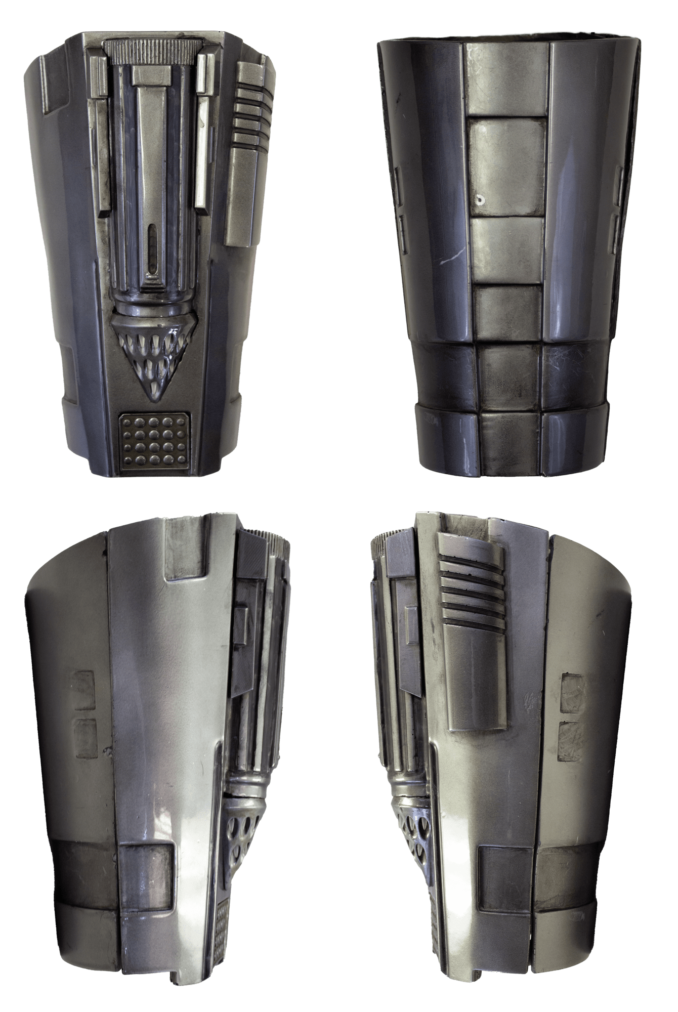 Guantelete derecho: Se ve aprobable de lejos, me gustaría tener fotos enfocadas en esas piezas por favor. El guantelete derecho lleva un display LED con caracteres Mandalorianos, no tiene que ser funcional necesariamente así que mientras se vea bien, te lo paso.