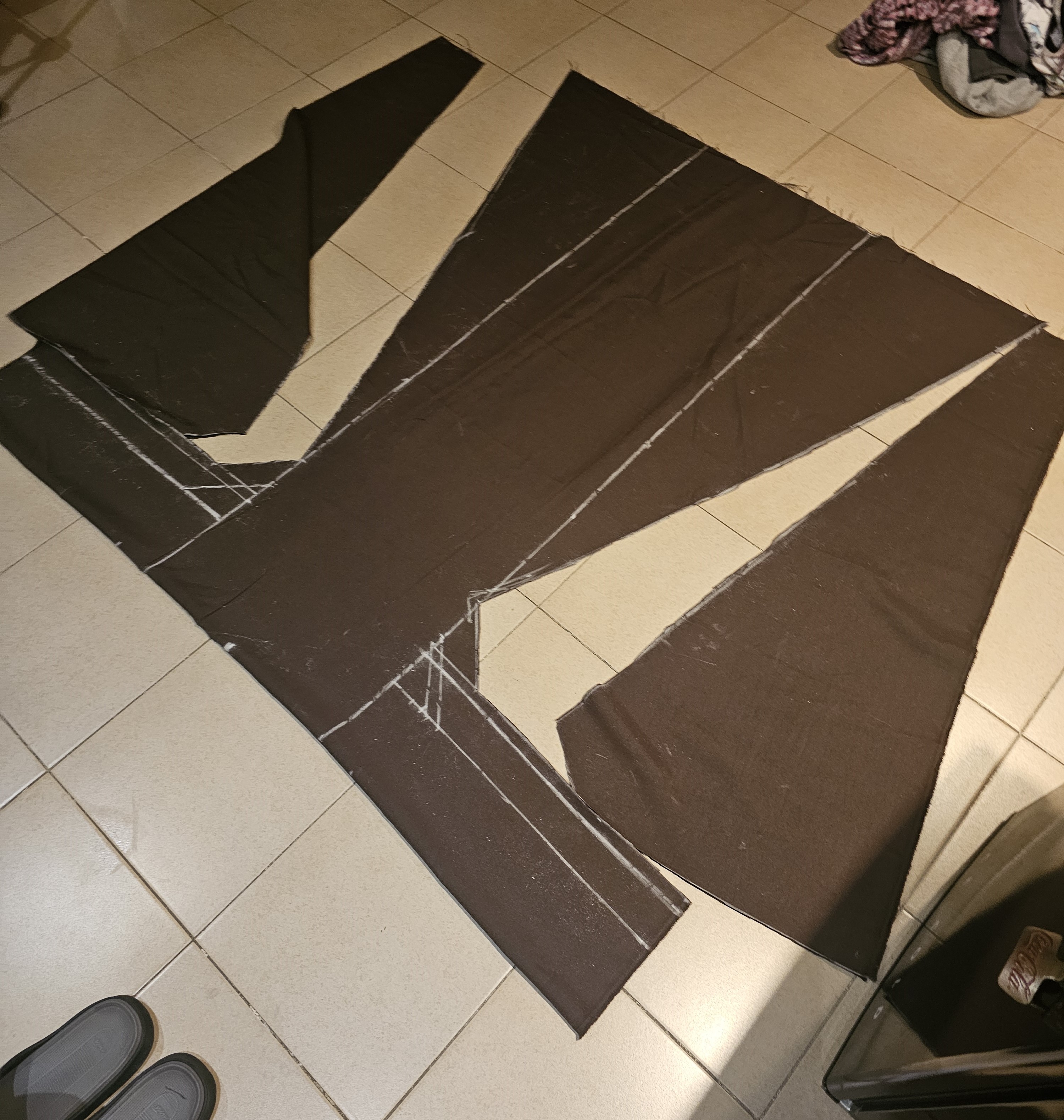 Trabajando en el patrón del jawa, la construcción es diferente al de la trilogía original, este debe ser en dos parte con una unión visible en el centro en la parte de atrás y debe cerrarse por enfrente, todavía tengo que hacer algunos ajustes del largo y el ancho de las mangas que no son tan grandes como los de la OT