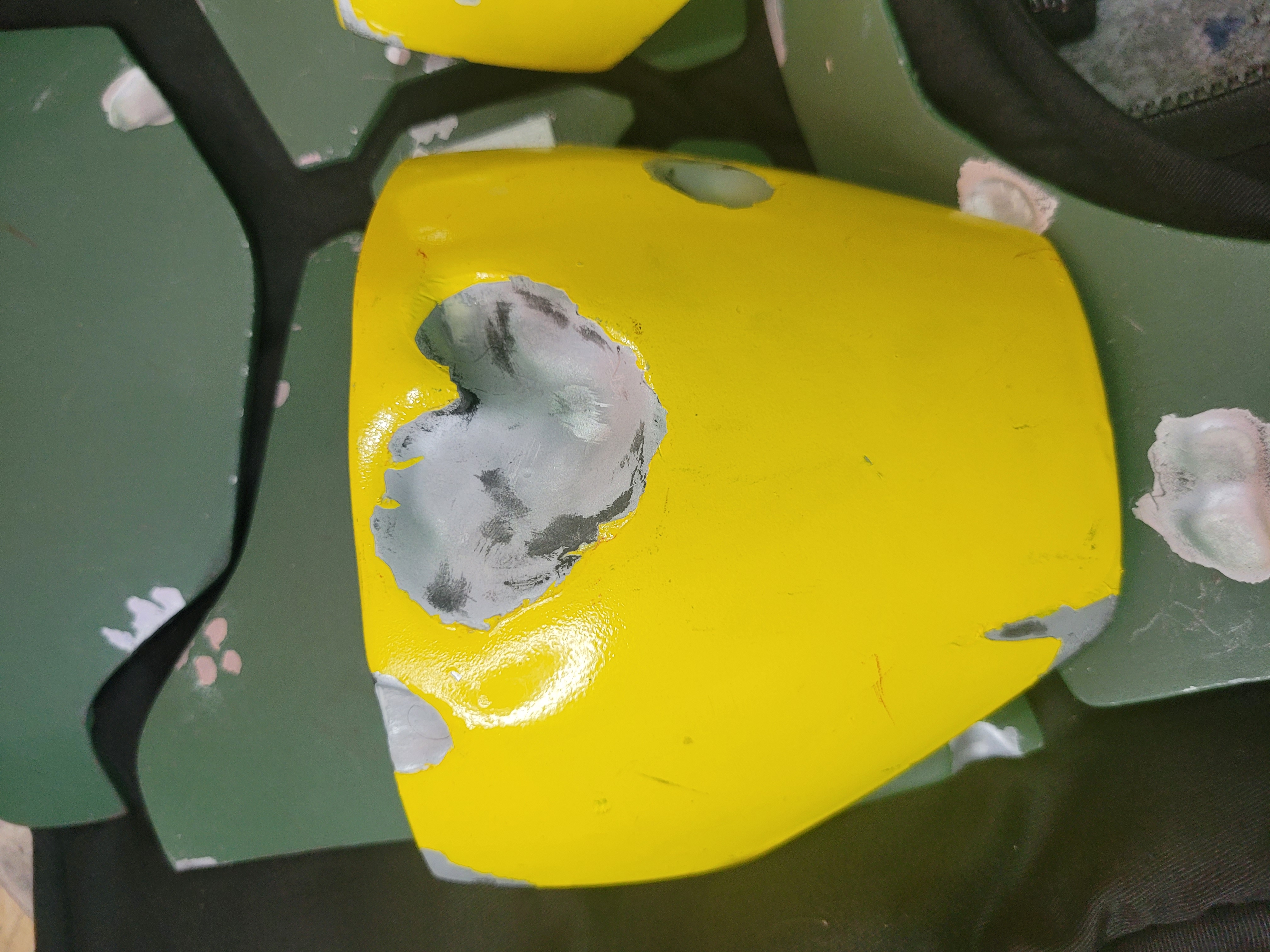 Hombreras/Rodilleras - Ya que el CRL no especifica el color especifico, esto te lo dejo a tu criterio, pero creo que sería bien repintarlos a un color más similar, ya que el tono de amarillo que tienes es muy vibrante y necesita ser más mango (casi anaranjado). Adjunto foto. Sinceramente se vería mucho mejor, pero si decides no hacerlo creo que te lo podemos pasar.
