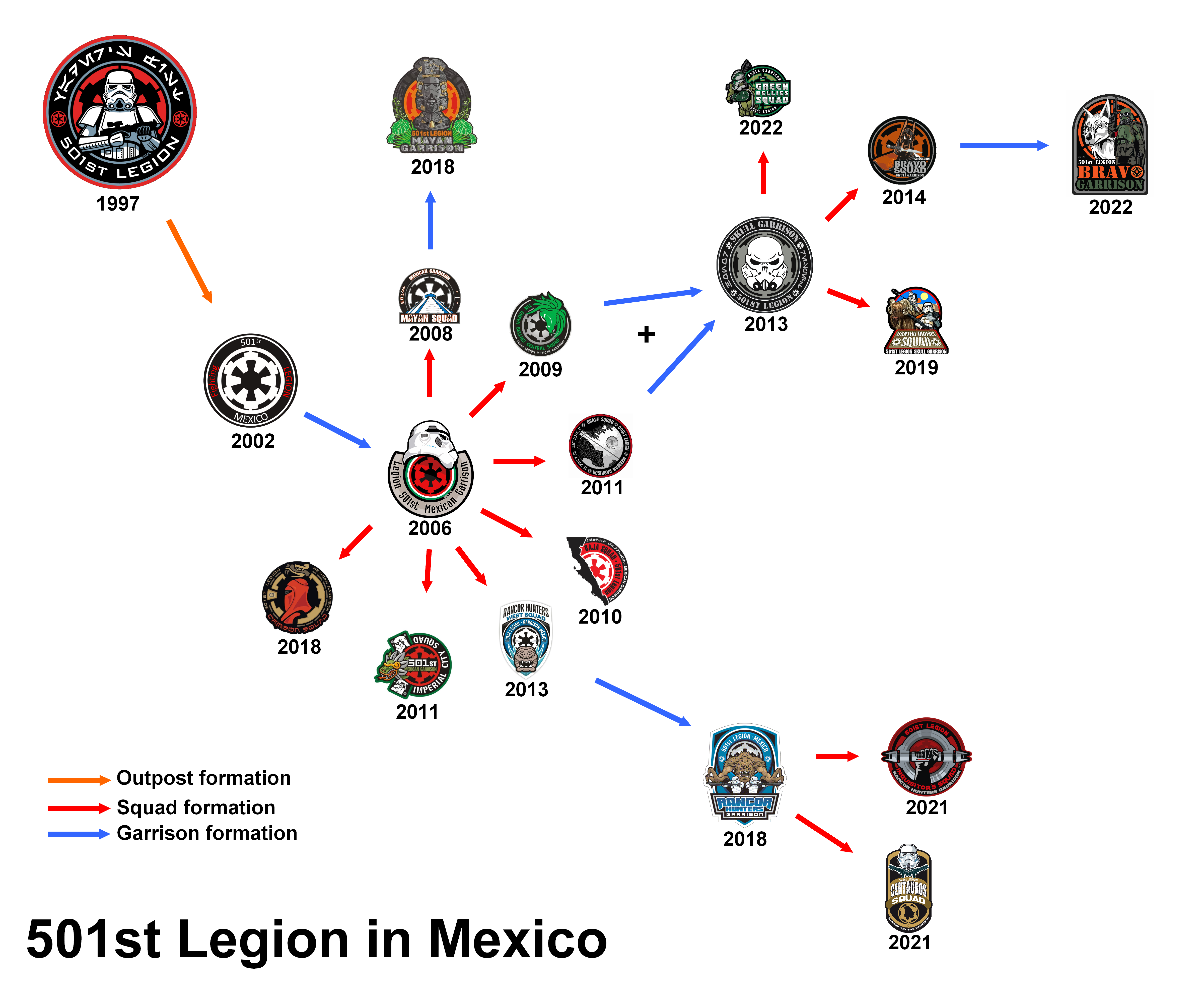 Bravos, aquí les dejo un mapa de la 501st en México desde fu formación como Outpost en 2002 hasta nuestra Garrison. Saludos