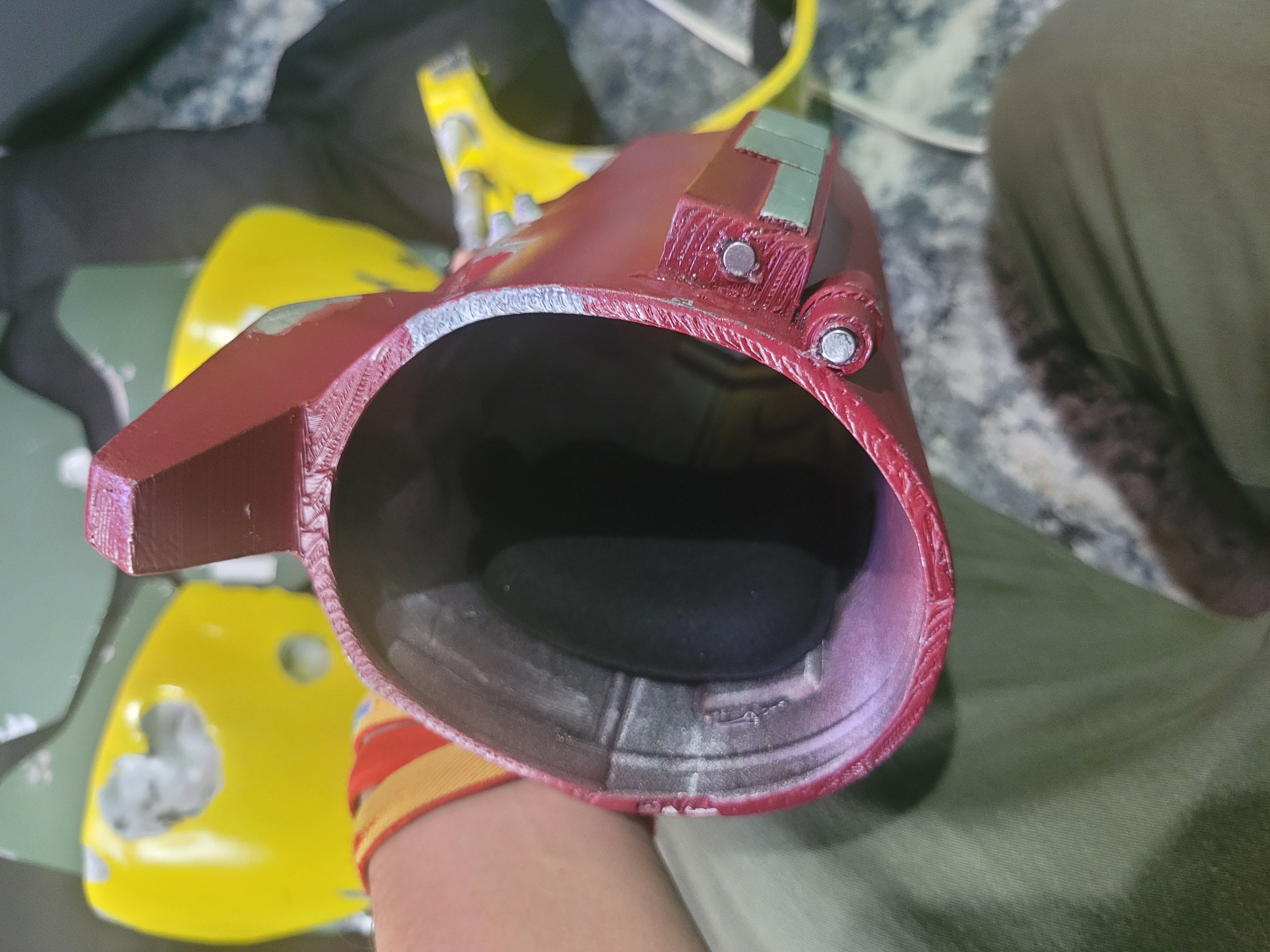 Parte del misil pintada en negro, holdster, cinto de cuerdas, botas nuevas, detalles negros en lado derecho del casco.