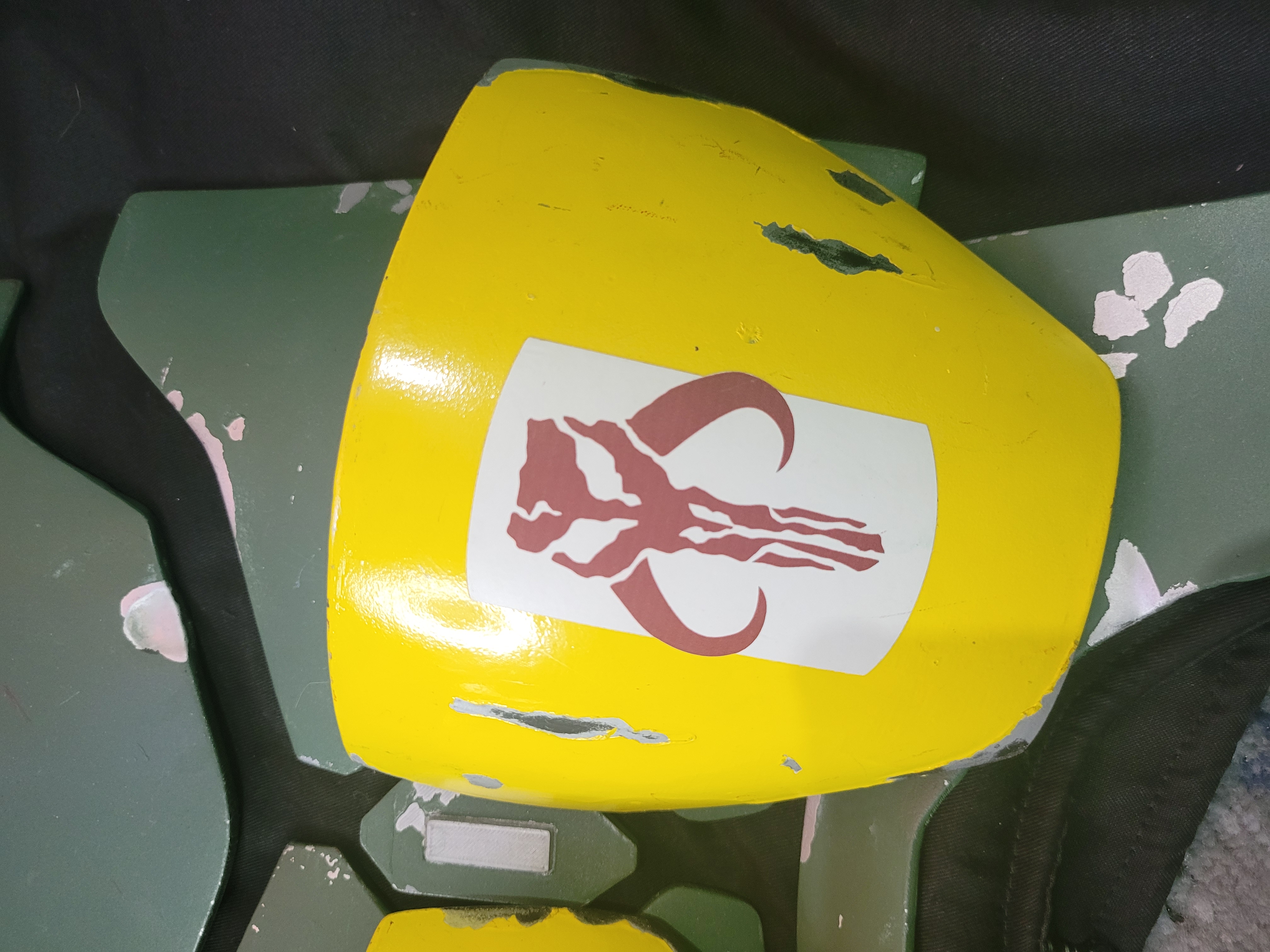 Hombreras/Rodilleras - Ya que el CRL no especifica el color especifico, esto te lo dejo a tu criterio, pero creo que sería bien repintarlos a un color más similar, ya que el tono de amarillo que tienes es muy vibrante y necesita ser más mango (casi anaranjado). Adjunto foto. Sinceramente se vería mucho mejor, pero si decides no hacerlo creo que te lo podemos pasar.