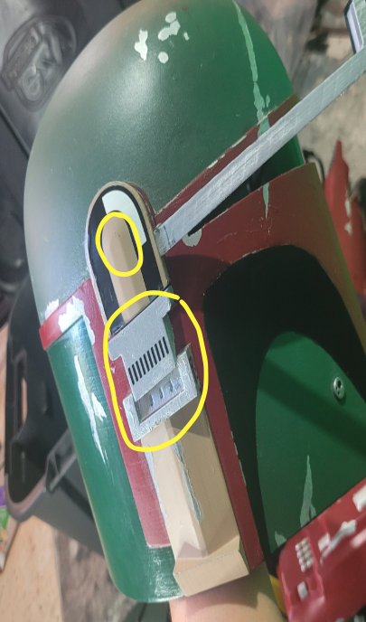 Casco - Repintar la oreja derecha para que asemeje más el CRL, incluyendo detalle negro al centro y cubriendo lo plateado. Adjunto foto.