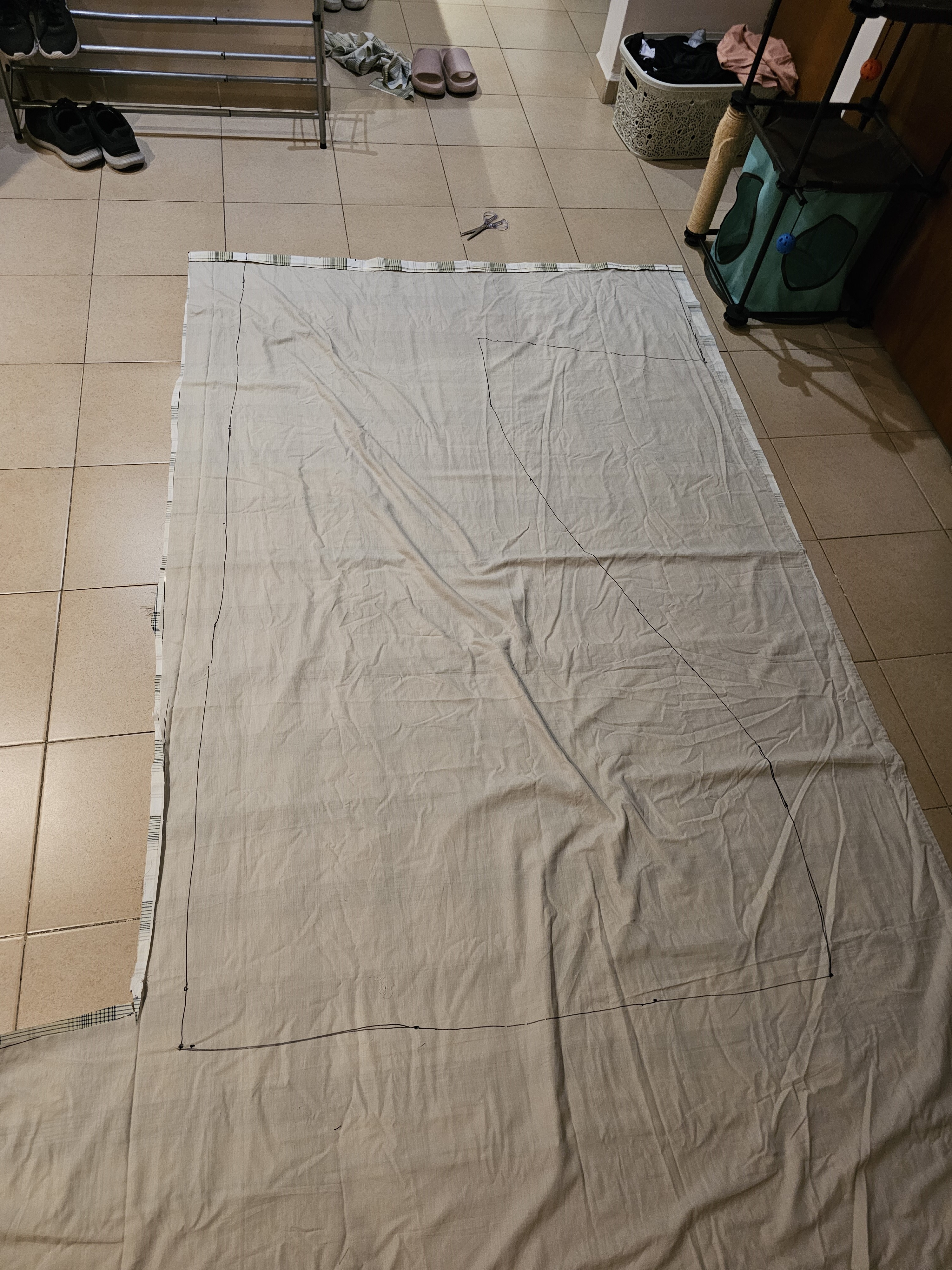 Ya tenía el patrón hecho en otra tela entonces ya solo lo tracé y recorté