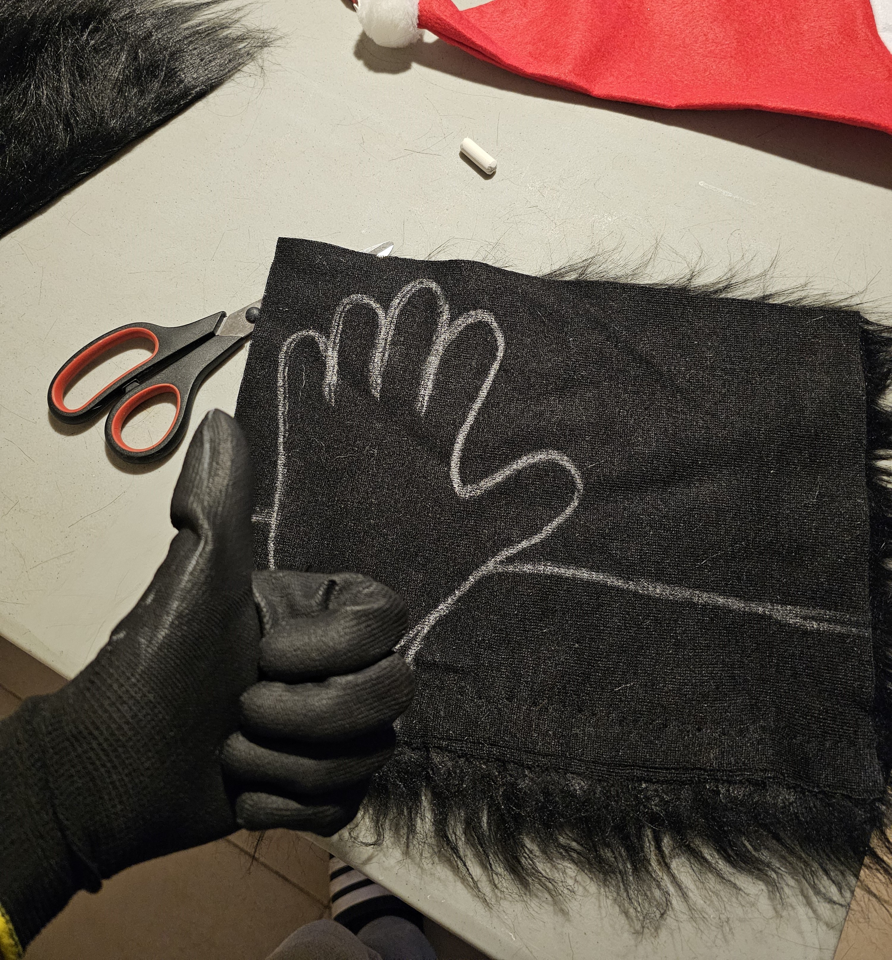 Después hice los guantes, conseguí tela con peluchito y los guantes con palma de plástico como dice el crl, recorté y pegué con silicón caliente, estos sí quedaron muy padres jsjs