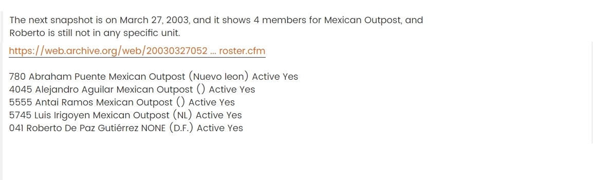 Finalmente en Septiembre 2003 Roberto de Paz se vuelve ya miembro del Mexican Outpost.